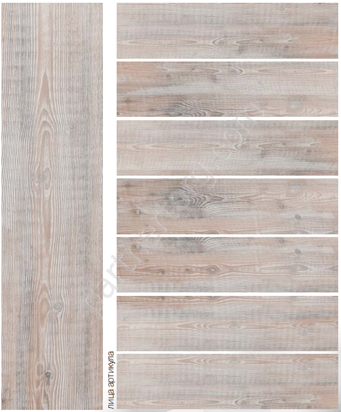 Светло-бежевый керамогранит воспроизводит древесину ели.