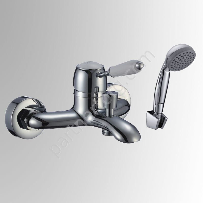Материал: Латунь. Покрытие: никель-хромовое; Цвет: хром; Излив: короткий литой. Комплект: лейка, шланг, крепление для лейки на смесители и настенное, дивертор
