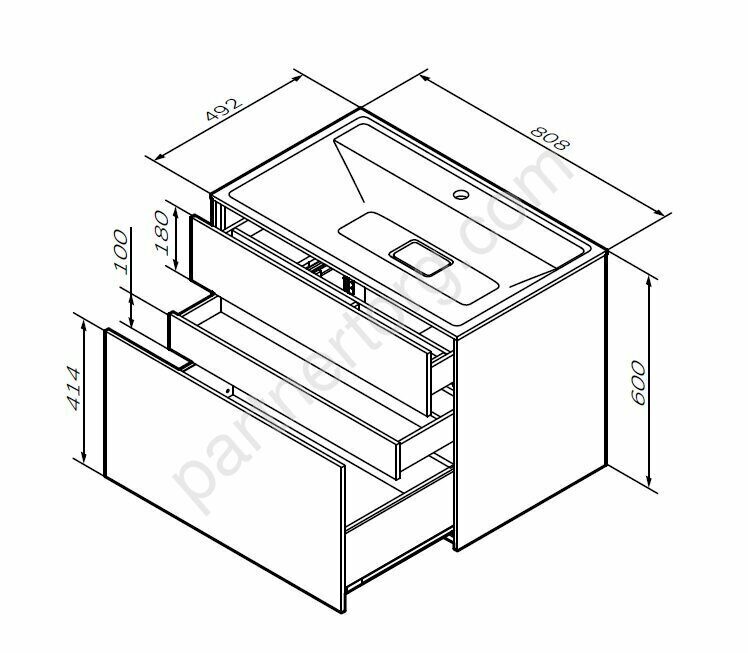 M50AFHX0803GM INSPIRE V2.0, База под раковину, подвесная, 80 см, 3 ящика, push-to-open, графит матов