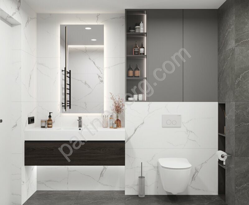 У нас можно подобрать всю необходимую сантехнику, мебель для ванных комнат, напольные покрытия, межкомнатные двери...