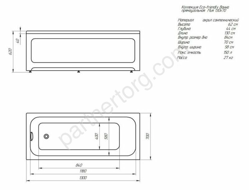 Прямоугольная ванна Мия 130х70 , с жесткой опорной конструкцией изготавливается из экологически чистого и безопасного 100% акрилового листа Altuglas сохраняет привлекательную и доступную цену.