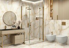 Керамогранит Moonstone, или «лунный камень», назван в честь драгоценного опала. Бразильский оникс отображает все оттенки этого камня. Коллекция включает холодный голубой оникс с теплыми градиентами и объемной жилой, а также теплый бежевый с сизыми прожилками и холодной вуалью. Этот керамогранит великолепно комбинируется с металлическими аксессуарами и бордюрами, а также с Ice Onyx и Domines.