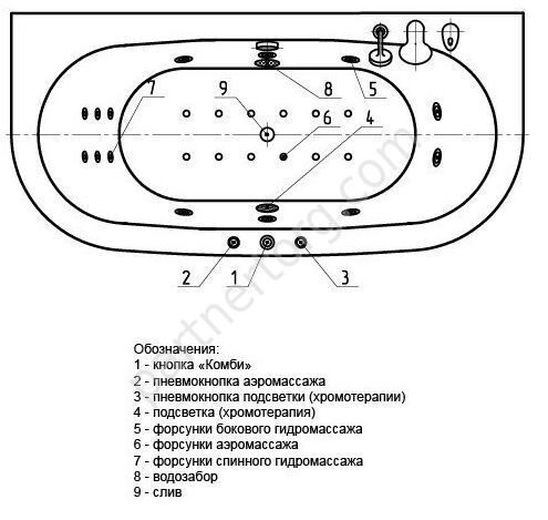 Дополнительно ванна может быть укомплектована гидромассажнем, аэромассажем, подсветкой и другим оборудованием