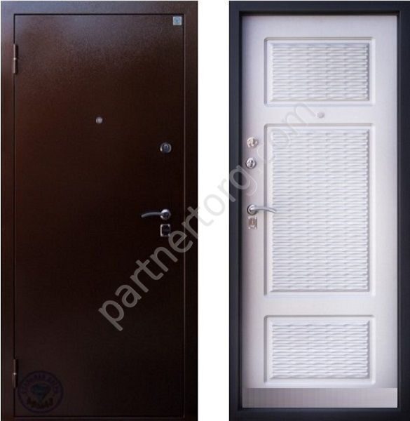 Размеры 880х2050, 960х2050 мм. Сталь: 1,5-1,8 мм. Основной замок «Гардиан» 2114. Дополнительный замок «Гардиан» 1201. D-профиль по всему периметру. Двухслойное полимерное покрытие. Декоративная МДФ панель 16 мм.