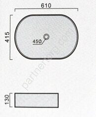 Размеры: 610*415*130 мм. Материал: фарфор. Цвет: белый. Раковина на столешницу.