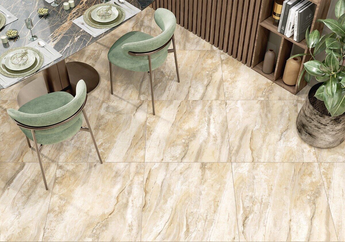 Керамогранит Neil представлен в формате 600600 мм, с теплой многоцветной палитрой бежево-коричневых оттенков и текстурой, напоминающей мрамор. Этот материал прекрасно дополнит классический интерьер. Лаппатированная поверхность, безопасная для использования, подходит как для жилых помещений, так и для общественных, включая магазины, отели, кафе и рестораны. Одним из основных преимуществ керамогранита является ректифицированный край, обеспечивающий минимальные расширительные швы при укладке.