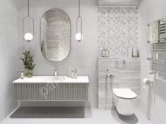 Карвинг-эффект на плитке — это особый вид декоративной обработки поверхности, при котором создаётся тонкий рельеф, имитирующий резьбу или природные узоры. Этот эффект достигается за счёт использования специальных технологий, которые добавляют плитке визуальную глубину и лёгкое мерцание. Карвинг подчёркивает текстуру, например, прожилки мрамора, древесные линии или геометрические узоры, делая поверхность более изысканной и привлекательной.