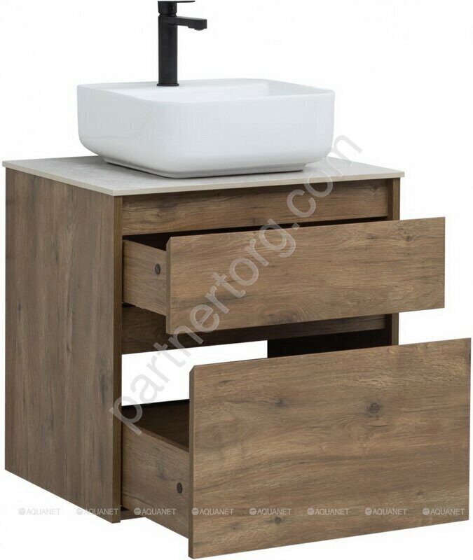 Nova Lite 60 тумба дуб рустикальный для ванной комнаты 2 ящика с раковиной-столешницей Латина 60 Aquanet
