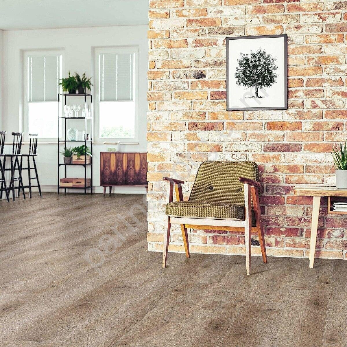 Современное, качественное напольное покрытие толщиной 5 мм, включая интегрированную подложку, имитирует дерево ценных пород, фаска с 4-х сторон подчеркивает формат натурального дерева.