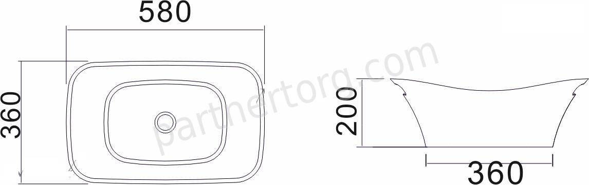 Размер: 58х36х20см. Материал: POLYSTONE (искусственный камень). Для монтажа на столешницу. Матовая (NST-5836M )