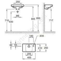 Размер: 40х25х14см. Раковина накладная. Материал: Санфарфор. Цвет: белый. Смеситель справа