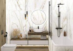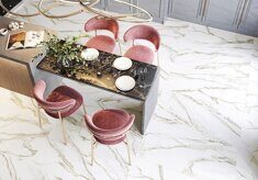 Это текстура белого мрамора сорта Calacatta Borghini, который выделяется среди других мраморов благодаря тонким полупрозрачным градиентным прожилкам, равномерно распределённым по белому фону, создающим оригинальный и изысканный вид. Основная особенность этого сорта заключается в его многообразии оттенков. Золотистые, коричневые и серые цвета с разной насыщенностью формируют уникальный узор, который дополнительно акцентируется эффектом deep-ink. Этот благородный мрамор с глубокой текстурой, ректифицированным краем и практичной матовой поверхностью станет основой для создания безупречного интерьера.