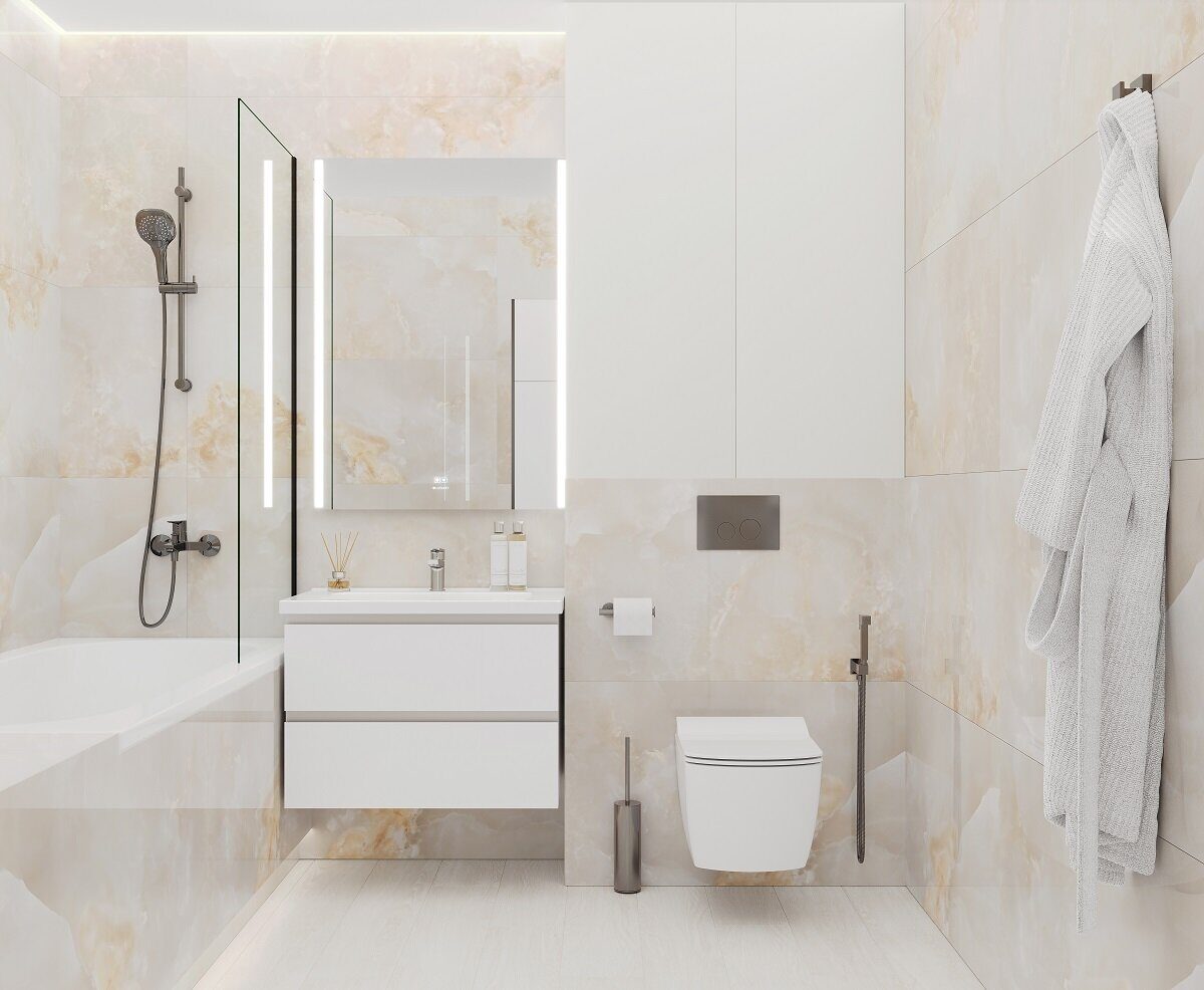 У нас можно подобрать всю необходимую сантехнику, мебель для ванных комнат, напольные покрытия, межкомнатные двери...