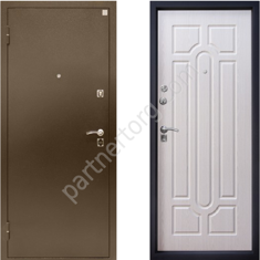 Размеры 880х2050, 960х2050 мм. Сталь: 1,2 мм. Основной замок «Гардиан» 3211. Дополнительный замок «Гардиан» 3001. Наполнение: Минеральная плита + пенополистирол. Декоративная МДФ панель 8 мм с филенчатым рисунком: цвет беленый дуб, венге. Доступен индивидуальный дизайн.