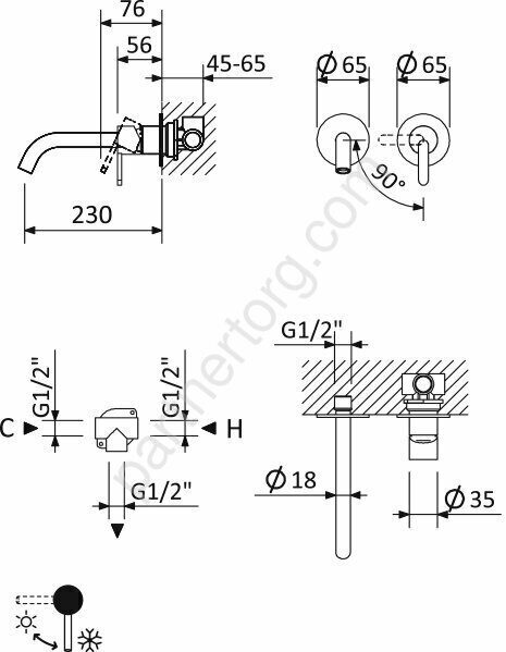 Для раковины встраиваемый (в стену)