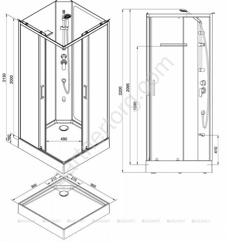 AquanetPassion S 2.0 душевая кабина 90х90см прозрачное стекло, с гидромассажем Aquanet