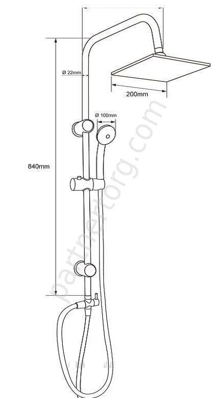 Особенности: Верхняя лейка 200мм АВС, ручная лейка АВС 3- поз, шланг серебристый PVC - 1,5 м