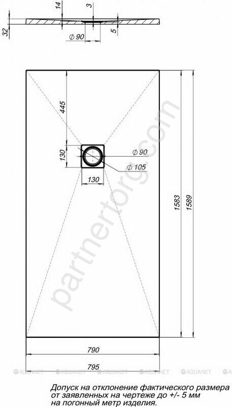 Размер: 160х80х3 см. Материал: литьевой мрамор. С антискользящим покрытием. С переливом.