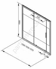 Размер: 155х150см. Профиль алюминий, хром. Стекло: прозрачное белое, 6мм.