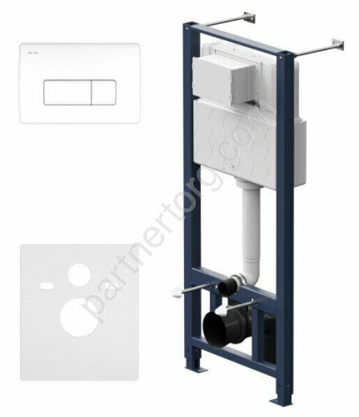 Максимально полная комплектация - все необходимые крепления, патрубки, звукоизолирующая прокладка в комплекте. Вертикальные ребра жесткости в конструкции рамы – дополнительная опора в месте давления керамики на стену. Благодаря им инсталляция более универсальная и подходит для унитазов любых размеров, включая унитазы с небольшой контактной поверхностью. Нет необходимости докупать дополнительные аксессуары для монтажа таких унитазов.