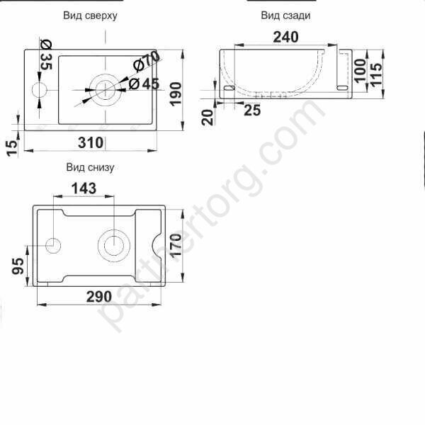 Главная Каталог магазина Сантехника Раковины/Умывальники Раковина подвесная A311R-803 правая 31х19х11,5см