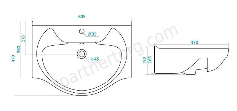 Раковина: ширина - 700, глубина - 440, высота - 195