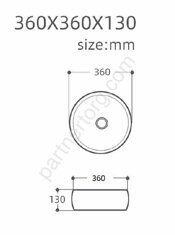 Размер: 36х36х13см. Цвет: черный матовый. Материал: керамика. Без отверстия под смеситель.