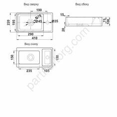 Размеры: 41х22х10см. Цвет: матовая серая. Без перелива. С отверстием под смеситель
