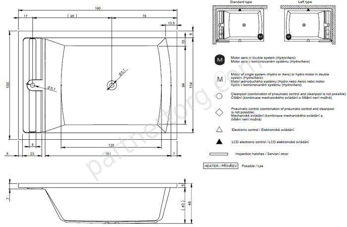 Характеристики акриловой ванны Рихо Савона 190х130 см