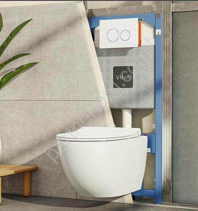 Sento L-Box комплект Vitra 9830B003-7207: инсталляция, клавиша смыва матовый хром, унитаз безободковый, сиденье с микролифтом