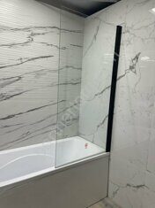 Шторка на ванну Aquatek AQ DEL SBA 08015BL, одноэлементная, поворотная 80X150см, профиль черный, стекло прозрачное