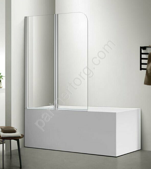 Размер: 99х150см. Для монтажа на борт ванны. Поворотная (в обе стороны). Уплотнительный профиль по примыканию к ванне. Алюминиевый профиль, хром для крепления к стене. Стекло прозрачное, закаленное 6мм.