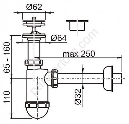 Сифон для умывальника d 32 мм, с нержавеющей решеткой d 63 мм A410