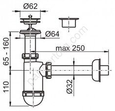Alca Plast, ЧехияСифон для умывальника d 32 мм, с нержавеющей решеткой d 63 мм A410