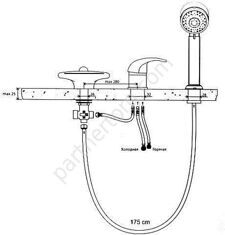 Комплект из смесителя, душевой лейки и каскадного излива для установки на борт ванны