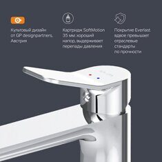 - керамический картридж SoftMotion 35 мм обеспечивает оптимальную регулировку температуры, а также позволяет выдерживать любые перепады давления;