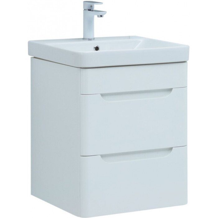 София 50 тумба белая глянцевая для ванной комнаты 2 ящика с раковиной-столешницей 50 cm (LUXURY) Sanovit Aquanet