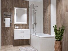 У нас можно подобрать всю необходимую сантехнику, мебель для ванных комнат, напольные покрытия, межкомнатные двери...