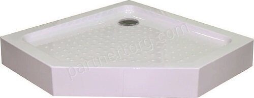Размер: 90х90х15см. Акриловый поддон, симметричный, пятиугольной формы. Высота: 150мм. В комплекте слив. Монтаж в бетонную стяжку.