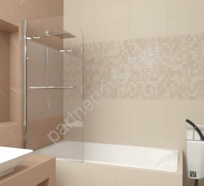 Размеры: 9090х150см. Прозрачное стекло 6мм. Профиль: хром, анодированный алюминий. Крепление: на борт ванны. Открывание: универсальное (внутрь/наружу)