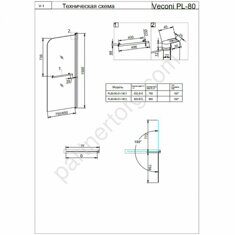 Veconi Palau PL-80 шторка на ванну универсальное открывание, PL80-90-01-19C1