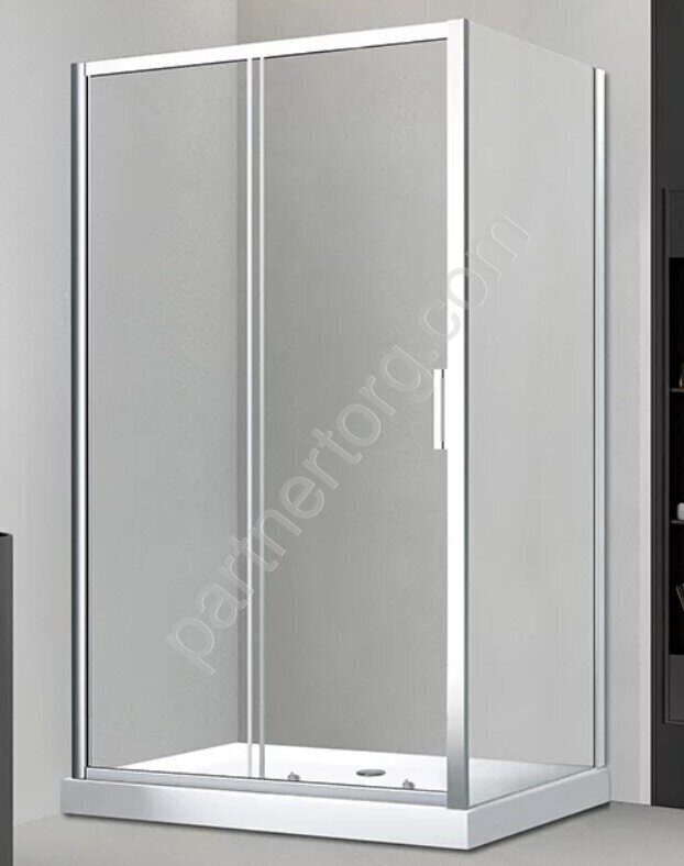 Размеры: 119-123х89-91х185см. Прозрачное стекло 6 мм. Алюминиевый профиль хром. 2 раздвижные двери.
