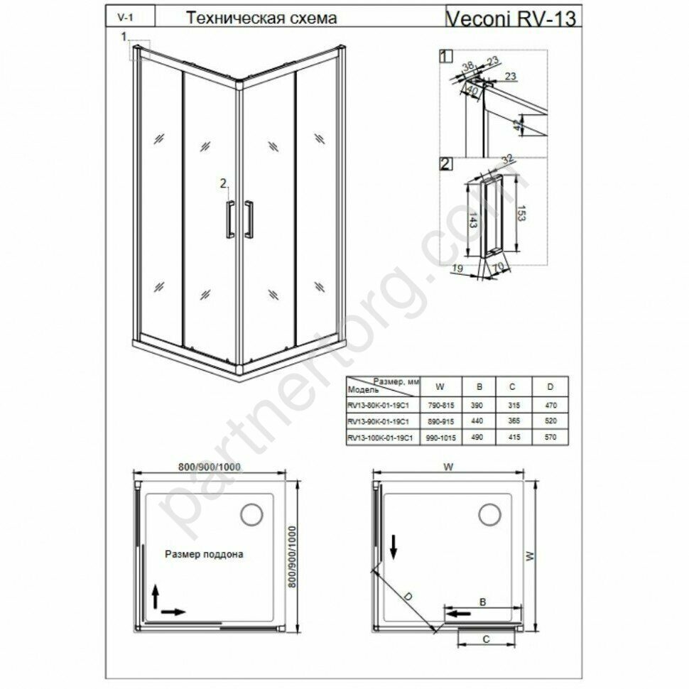 Veconi Rovigo RV-13 душевой угол раздвижной Veconi 90х90 черный профиль