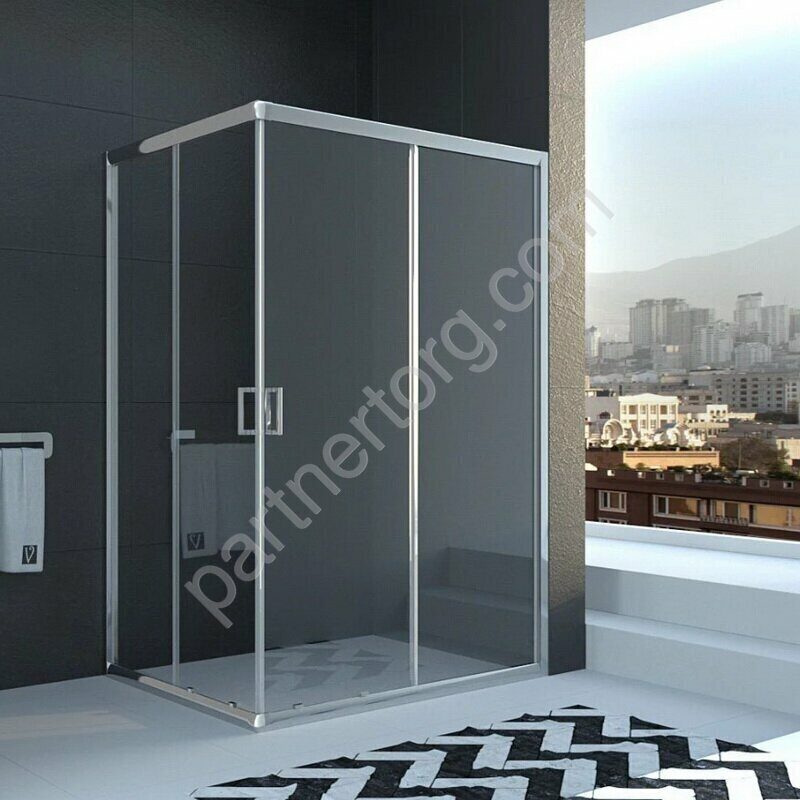 Размеры: 120х80x195 см. Прозрачное стекло 6 мм. Хромированный алюминиевый профиль. 2 раздвижные двери.