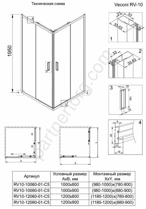 Veconi RV-10 душевой угол 120х80x195 см, RV10-12080-01-C5