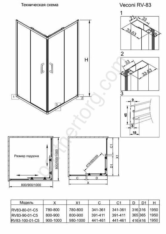 VeconiVeconi RV-83 душевой угол 100х100x195 см, RV83-100-01-C5