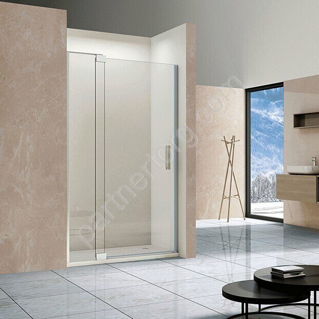 Размеры: 90(100)х200 см. Стекло: прозрачное, 8мм. Профиль: хром, анодированный алюминий. Одна распашная дверь.