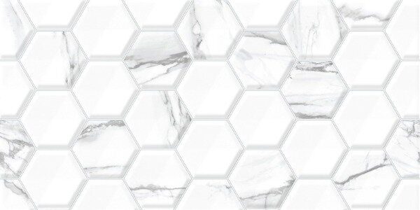 Alma Ceramica, ЗКИVegas настенная плитка белая глянцевая рельеф гексагон 25х50см Alma Ceramica TWU09VEG017