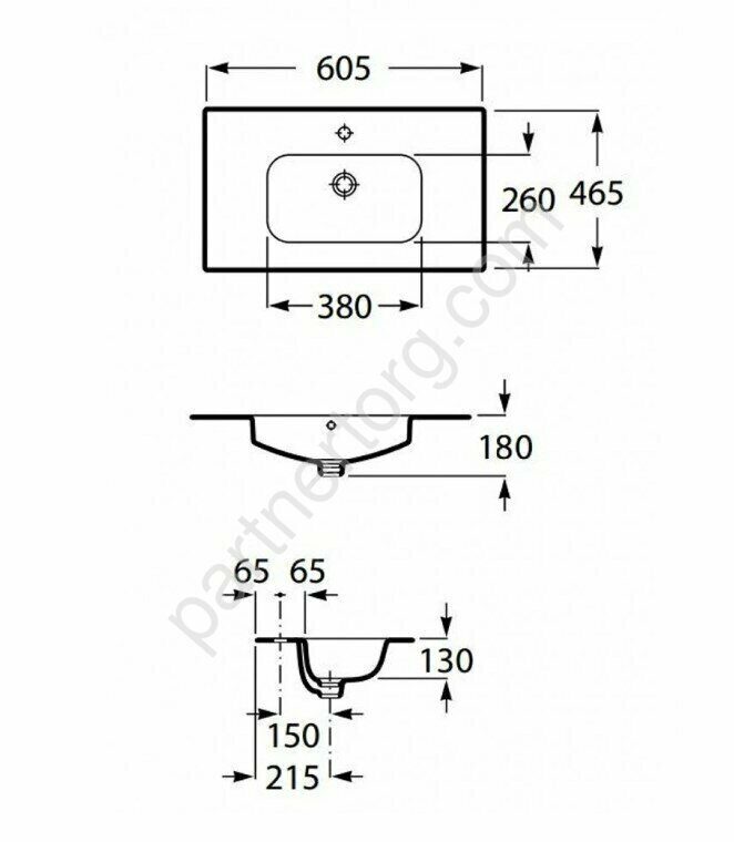 Размер: 18х60,5х46,5. Материал: санфарфор. Установка: встраиваемый сверху