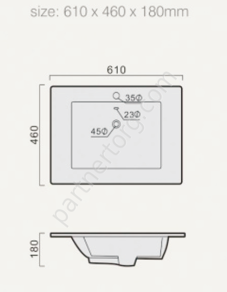 Размер: 610X390X180 мм. Материал: фарфор. Цвет: белый.